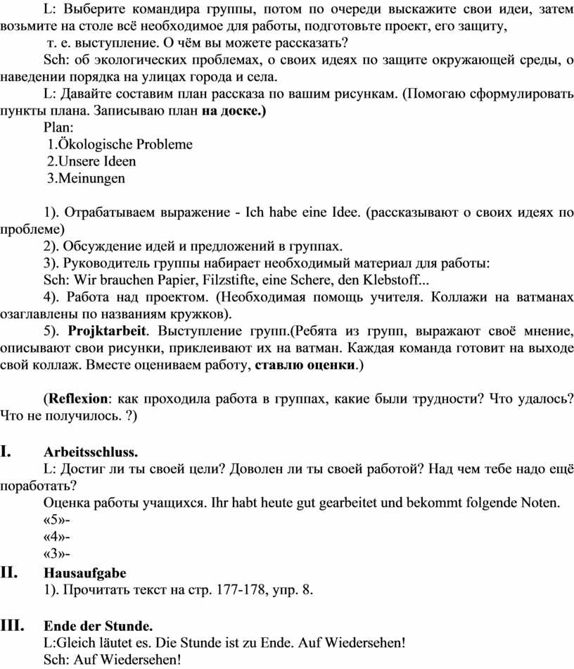 5). Projktarbeit. Выступление групп.(Ребята из групп, выражают своё мнение, описывают свои рисунки, приклеивают их на ватман. Каждая команда готовит на выходе свой коллаж. Вместе оцениваем работу, ставлю оценки.)