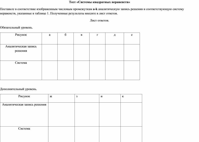 Поставьте в соответствие изображенным числовым промежуткам a-k аналитическую запись решения и соответствующую систему неравенств, указанные в таблице 1. Полученные результаты внесите в лист ответов.