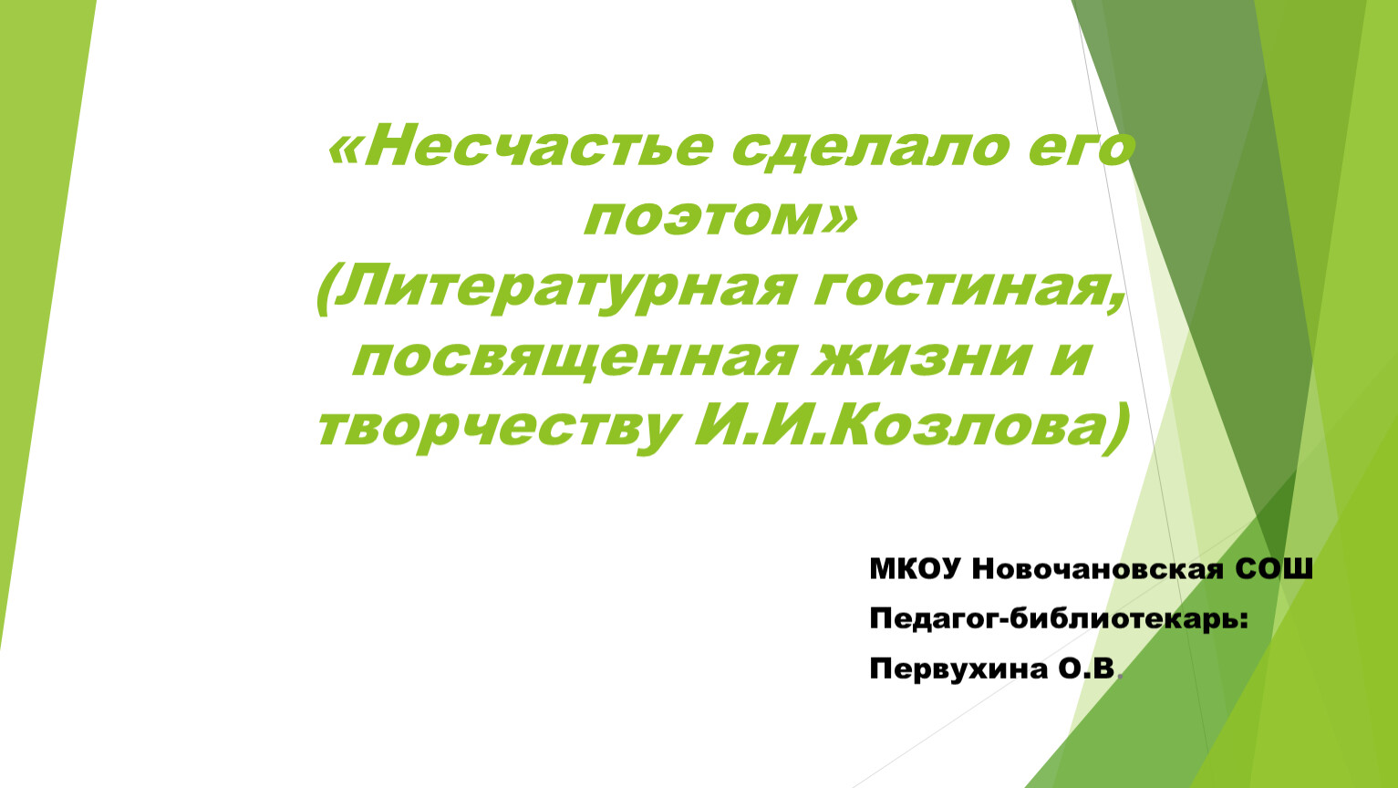 «Несчастье сделало его поэтом» (Литературная гостиная, посвященная жизни и творчеству И.И.Козлова)