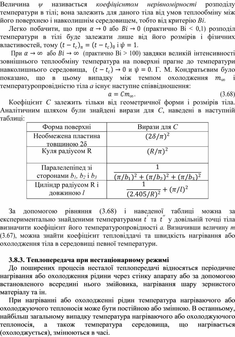 3.8.3. Теплопередача при нестаціонарному режимі