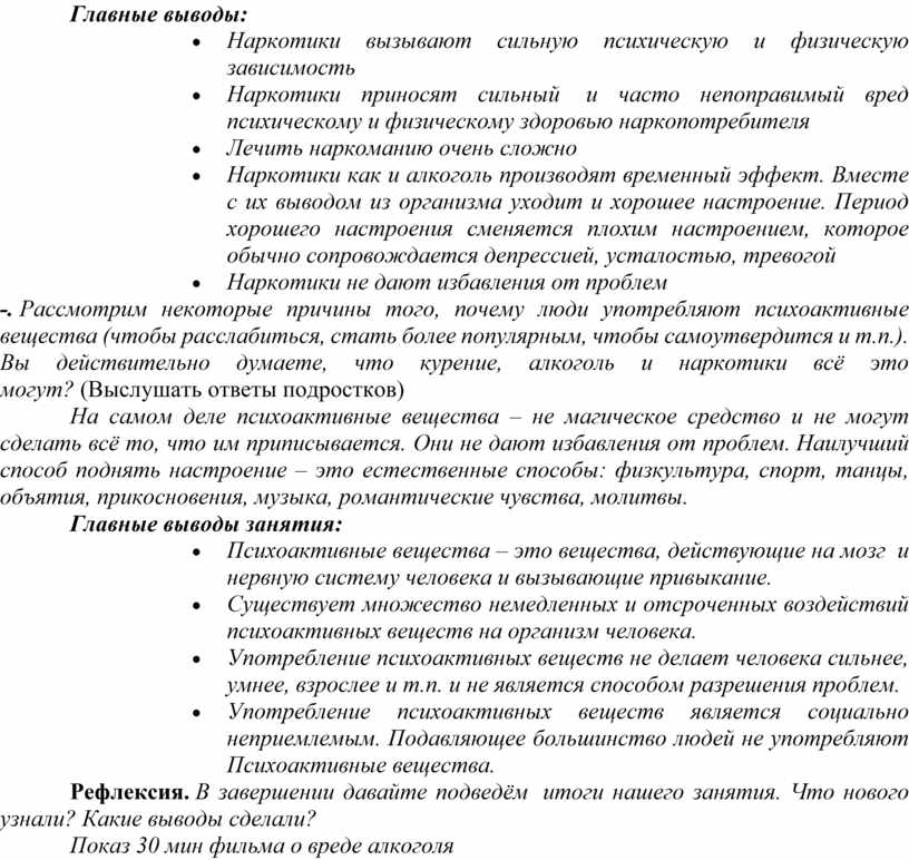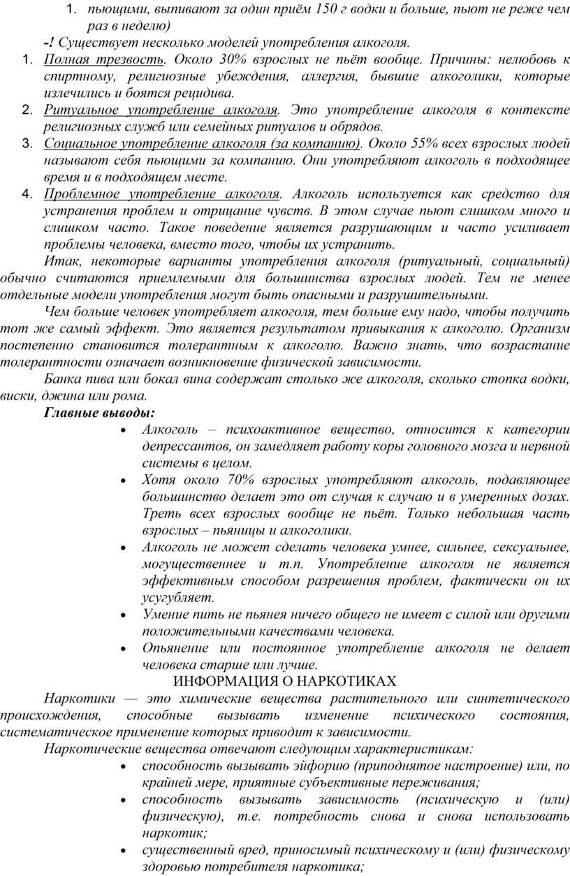 Предоставление подросткам информации по проблеме употребления психоактивных веществ