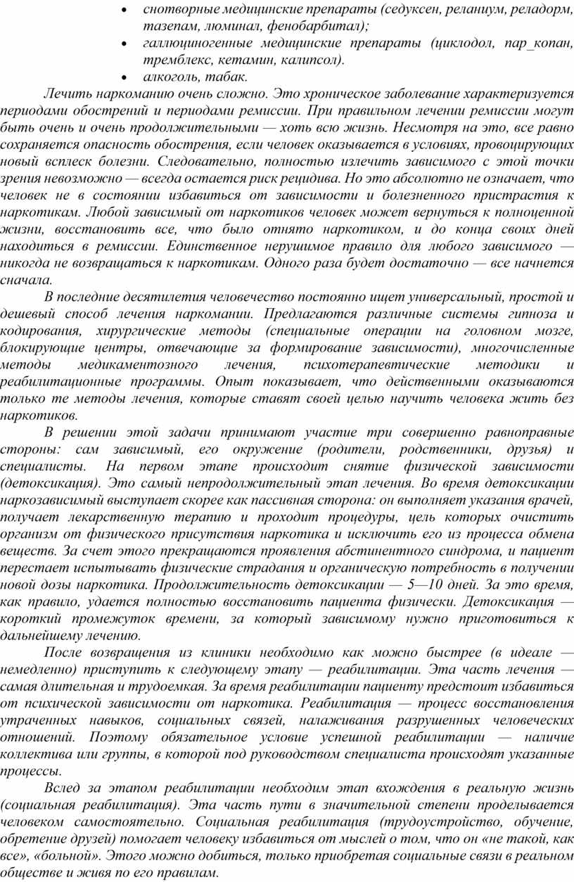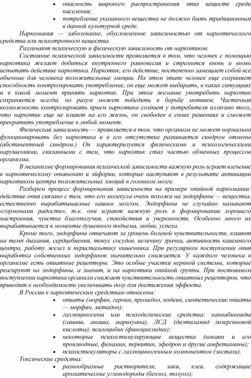 Наркотики — это химические вещества растительного или синтетического происхождения, способные вызывать изменение психического состояния, систематическое применение которых приводит к зависимости.