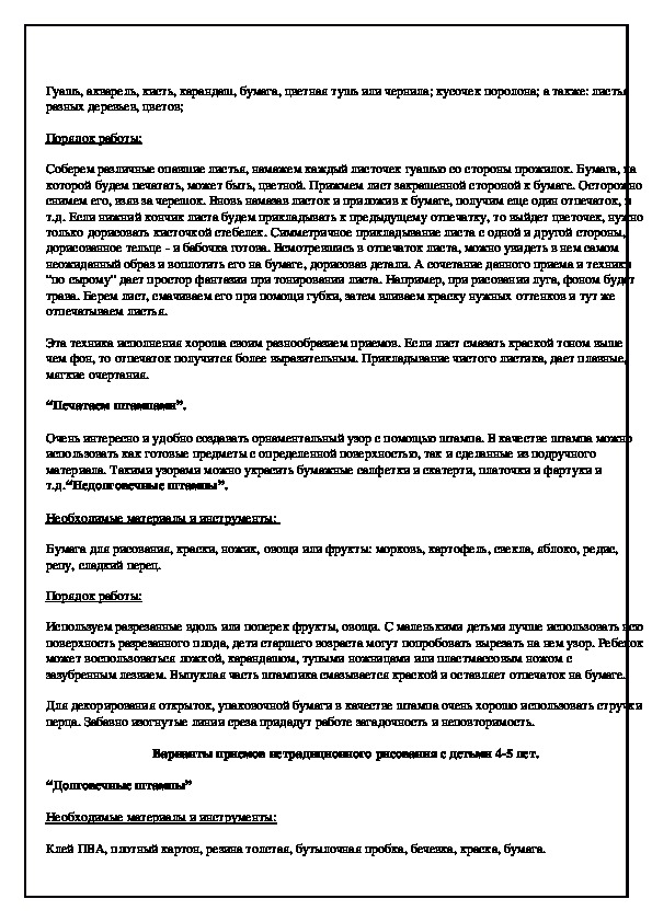 Варианты приемов нетрадиционного рисования с детьми 45 лет.
