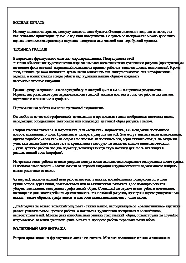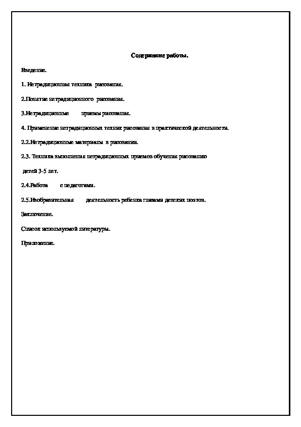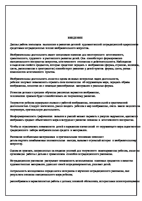 Данная работа посвящена выявлению и развитию детской художественной нетрадиционной одаренности средствами нетрадиционных техник изобразительного искусства.