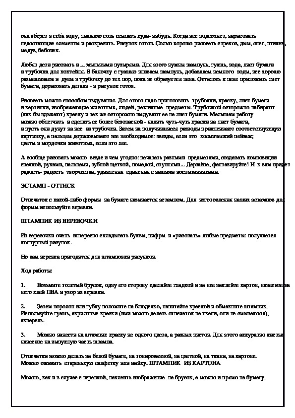 художественных материалов, удивляет своей непредсказуемостью, увлекает детей.