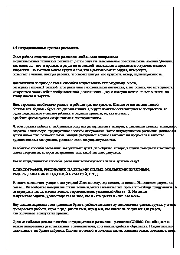 данного вида работы, дать свободу, чтобы занятие стало творчеством.Глава 1. Нетрадиционная техника рисования.