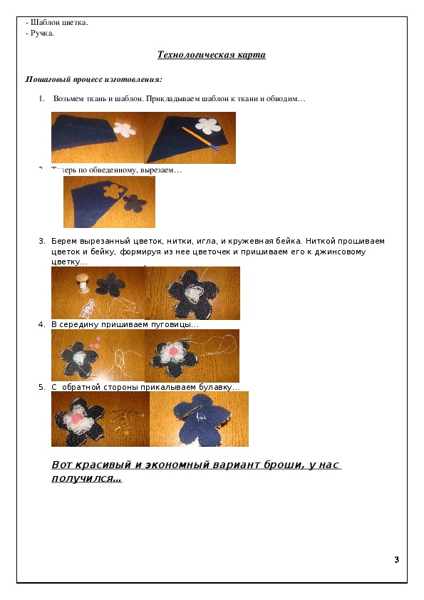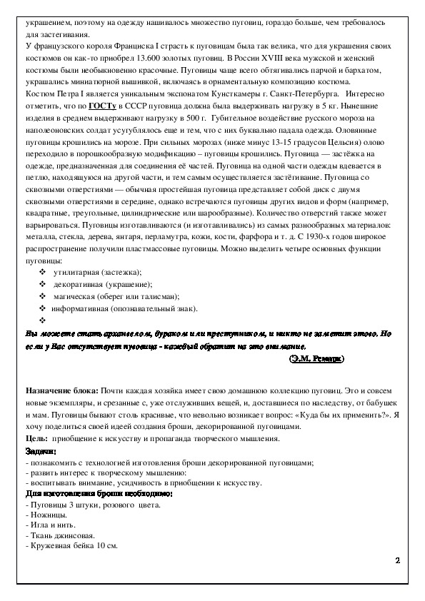познакомить с технологией изготовления броши декорированной пуговицами;
