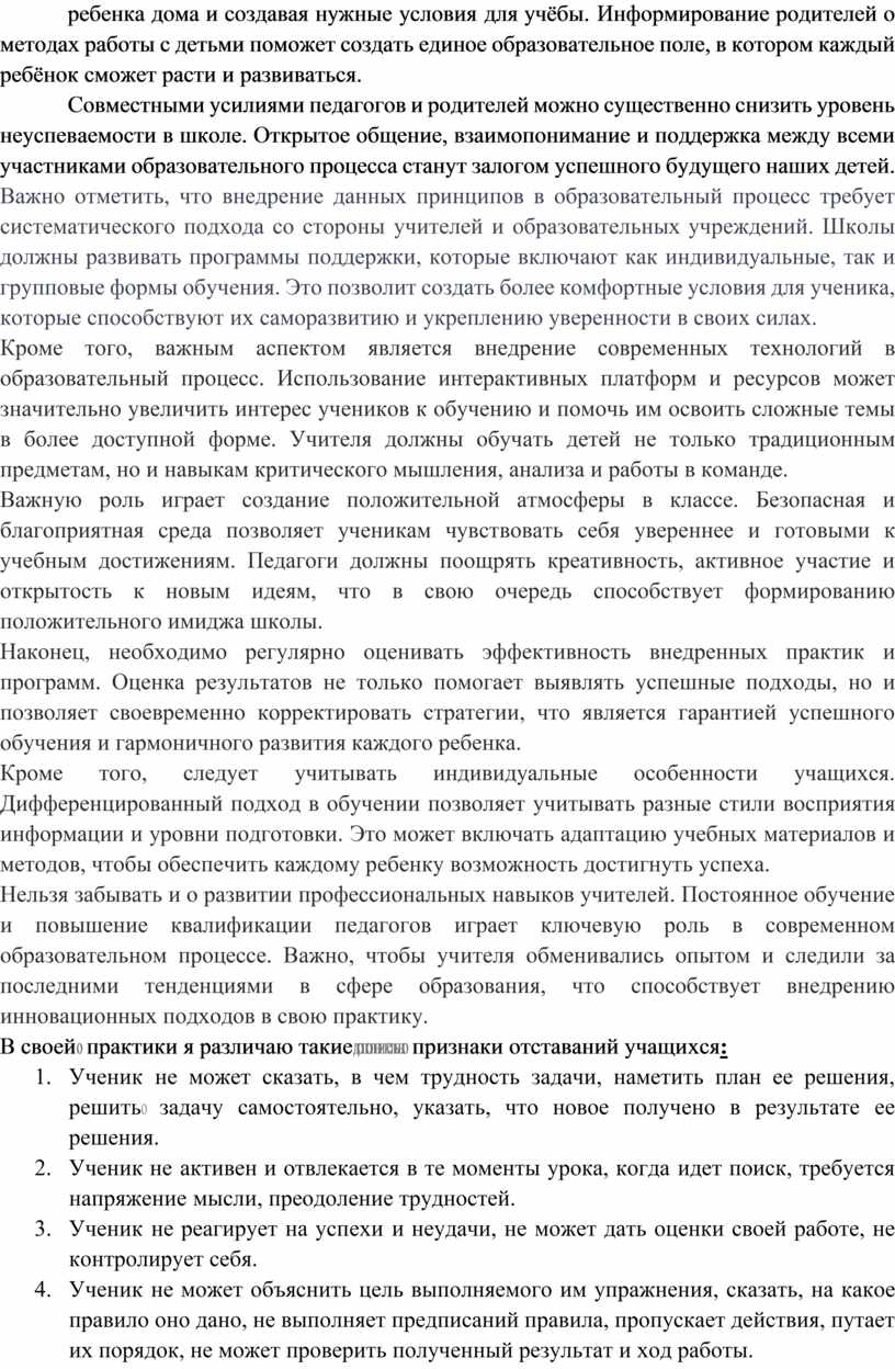 В своей о практики я различаю такие дополнительно признаки отставаний учащихся: