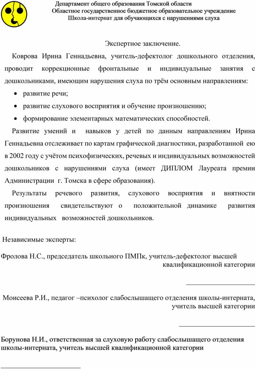 Развитие умений и навыков у детей по данным направлениям Ирина Геннадьевна отслеживает по картам графической диагностики, разработанной ею в 2002 году с учётом психофизических, речевых и индивидуальных возможностей дошкольников с нарушениями слуха (имеет ДИПЛОМ Лауреата премии Администрации г. Томска в сфере образования).