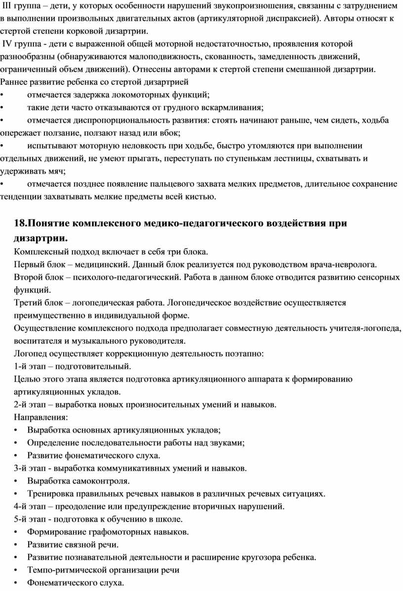 Стертая дизартрия рассматривается как следствие минимальной мозговой дисфункции, при которой, наряду с нарушениями звукопроизносительной стороны речи, наблюдаются нерезко выраженные нарушения внимания, памяти, интеллектуальной деятельности, эмоционально-волевой сферы, легкие двигательные расстройства и замедленное формирование ряда высших корковых функций.
