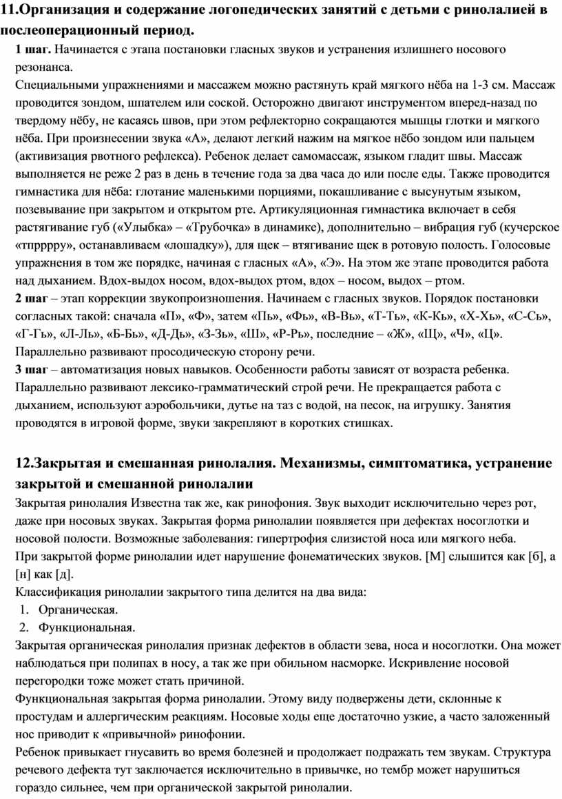 11.Организация и содержание логопедических занятий с детьми с ринолалией в послеоперационный период.