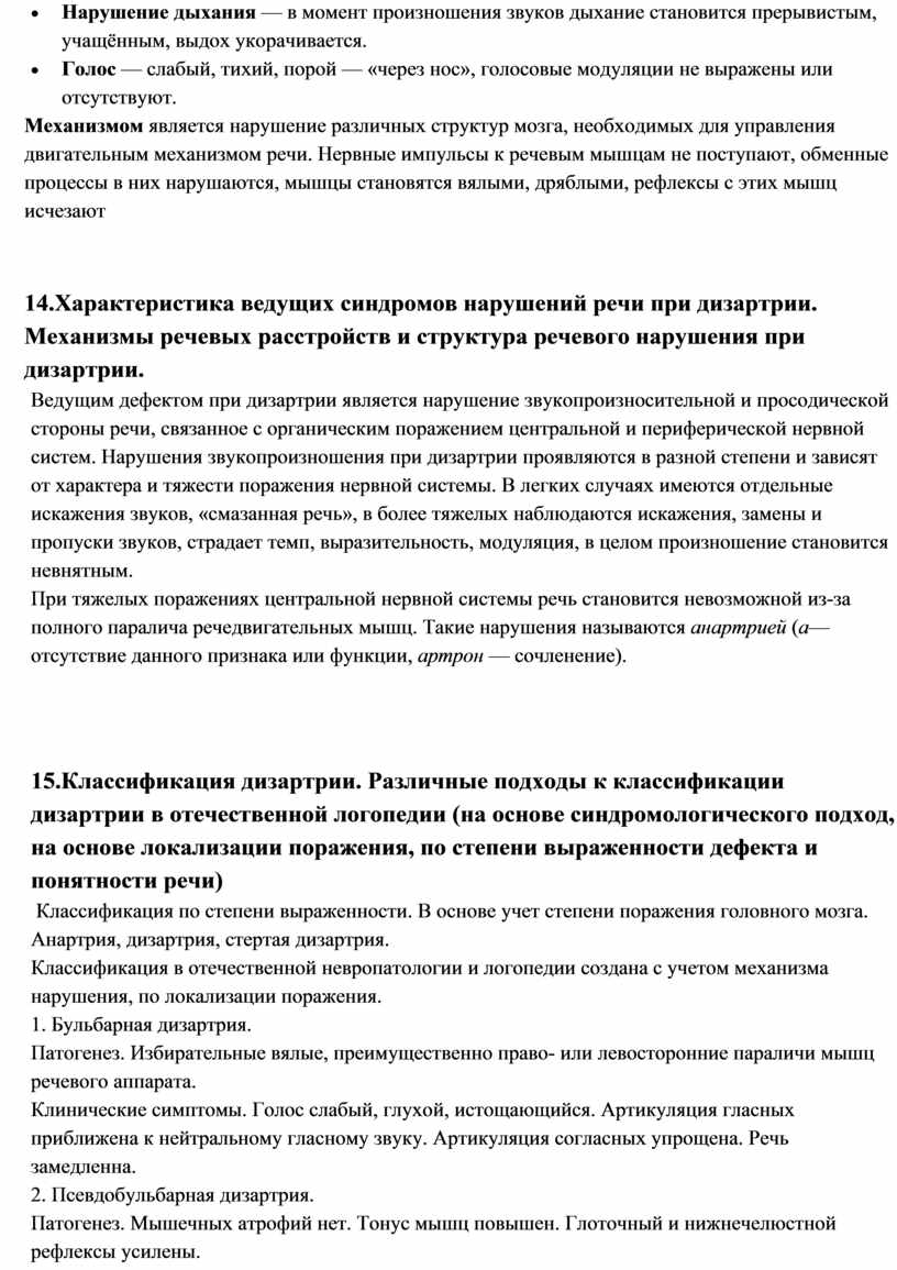 13.Понятие дизартрии. История изучения. Причины, механизмы и симптоматика дизартрии.