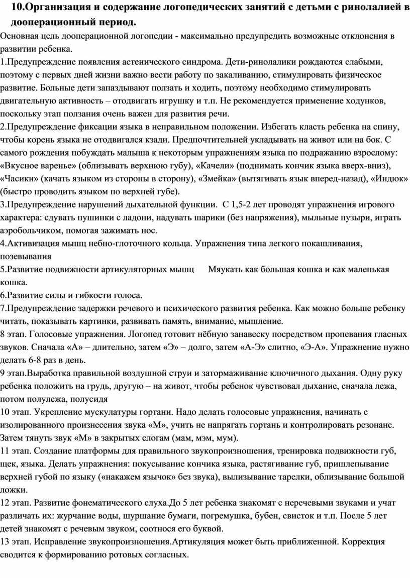 10.Организация и содержание логопедических занятий с детьми с ринолалией в дооперационный период.