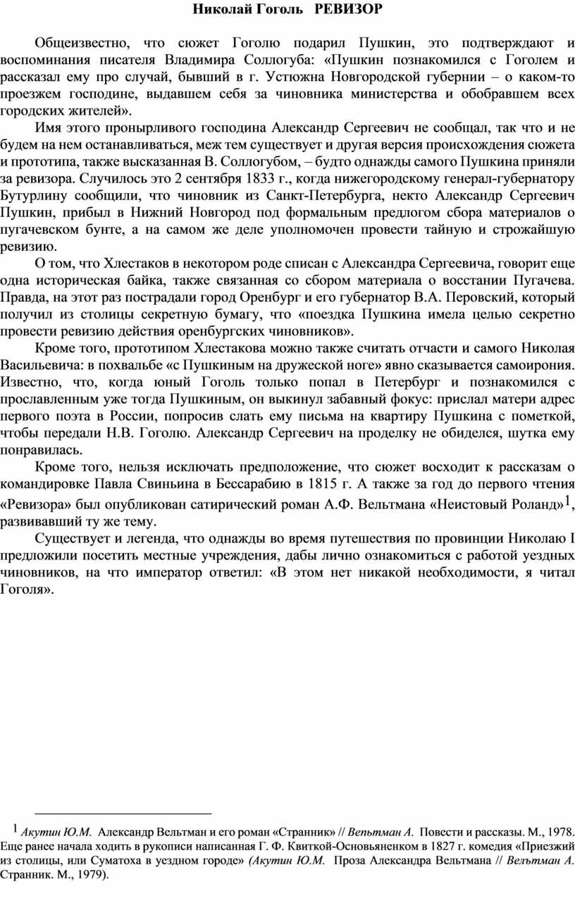 [1] Акутин Ю.М. Александр Вельтман и его роман «Странник» // Вепьтман А. Повести и рассказы. М., 1978. Еще ранее начала ходить в рукописи написанная Г. Ф. Квиткой-Основьяненком в 1827 г. комедия «Приезжий из столицы, или Суматоха в уездном городе» (Акутин Ю.М. Проза Александра Вельтмана // Велътман А. Странник. М., 1979).