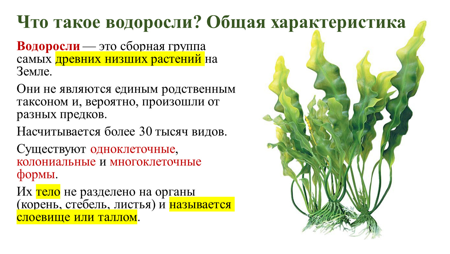 Водоросли — это сборная группа самых древних низших растений на Земле.
