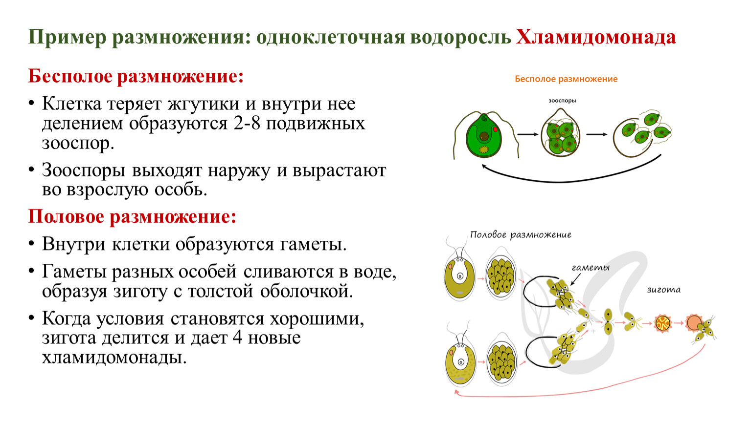 Пример размножения: одноклеточная водоросль Хламидомонада