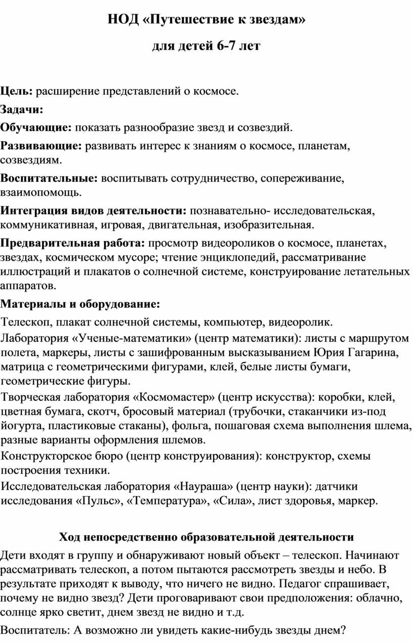 Воспитатель: Да, ребята, в центре нашей солнечной системы расположено Солнце, а вокруг него вращаются восемь планет: Меркурий, Венера, Земля, марс, Юпитер, Сатурн, Уран и Нептун. Планеты — наши соседи. Луна — спутник нашей планеты Земли, ее мы можем наблюдать ясной ночью и без телескопа. Звезды гораздо больше планет, самая близкая к нам звезда — Солнце. Без нее на Земле не было бы жизни, поэтому люди так неуютно чувствуют себя, если долго не видят солнца. А могут ли в космосе быть опасности? Как вы думаете?