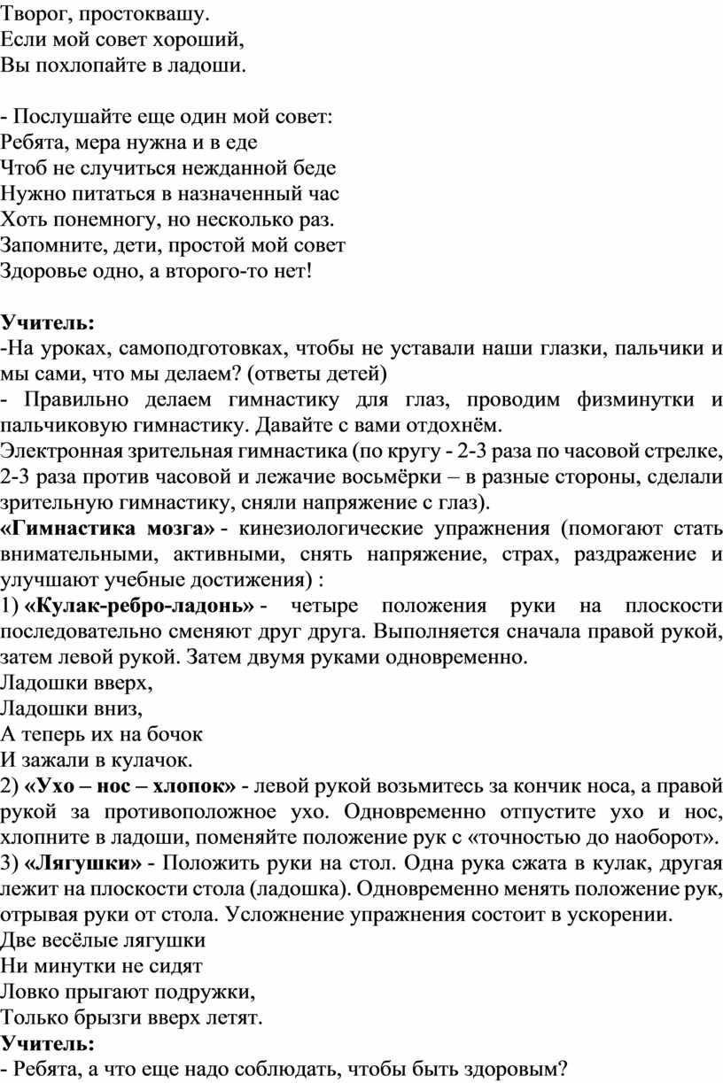 «Гимнастика мозга» - кинезиологические упражнения (помогают стать внимательными, активными, снять напряжение, страх, раздражение и улучшают учебные достижения) :