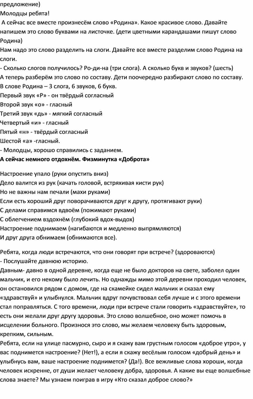 А сейчас все вместе произнесём слово «Родина». Какое красивое слово. Давайте