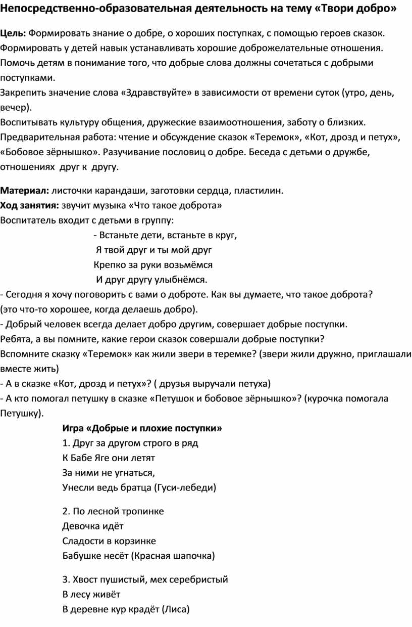 Непосредственно-образовательная деятельность на тему «Твори добро»