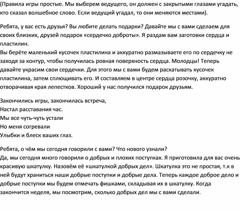 Игра «Добрые и плохие поступки»