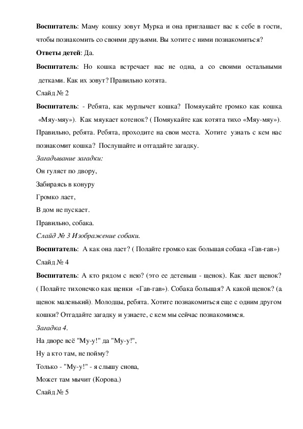 Воспитатель: Молодцы, ребята. Хотите еще узнать друзей нашей кошки?