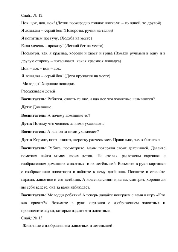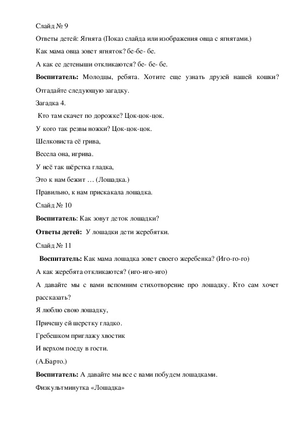 Воспитатель: Как мама лошадка зовет своего жеребенка? (Игогого)