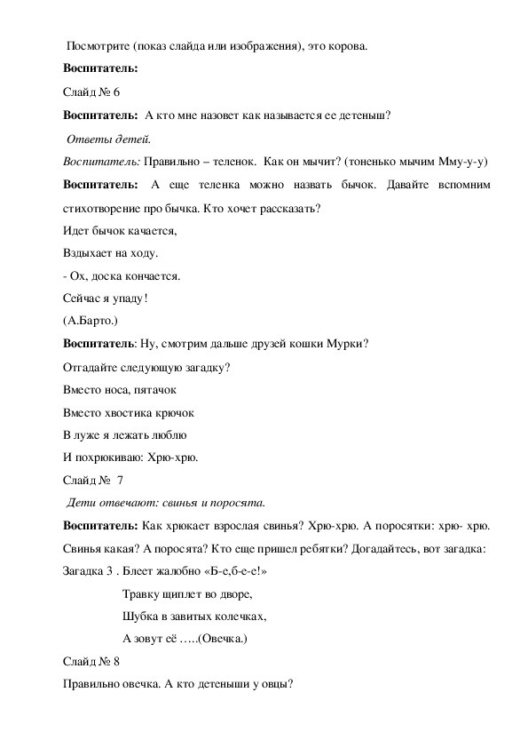 Воспитатель: Правильно – теленок. Как он мычит? (тоненько мычим Ммууу)