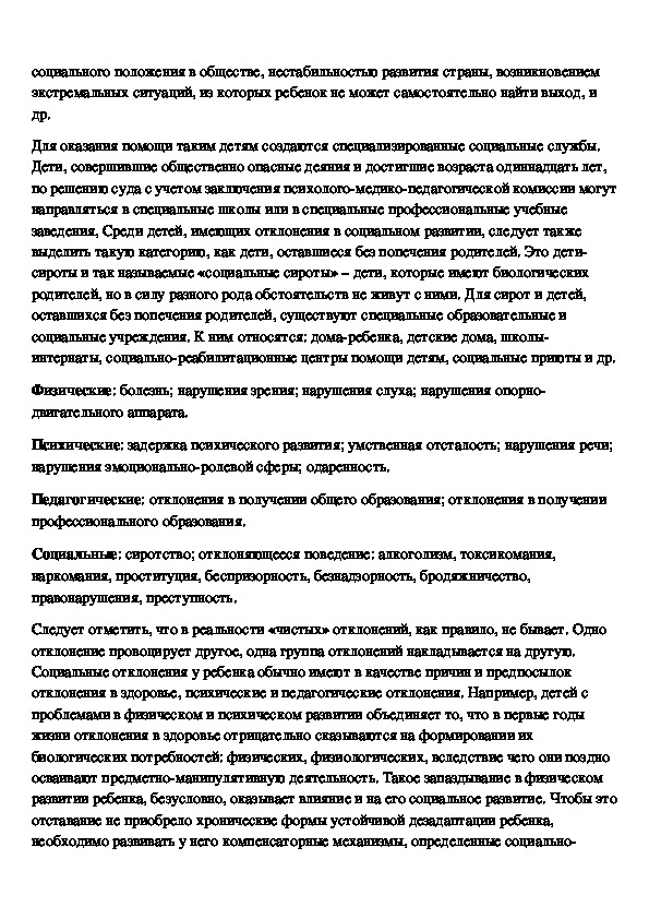 категориям «проблемных» детей, является термин «отклоняющееся развитие». Следует
