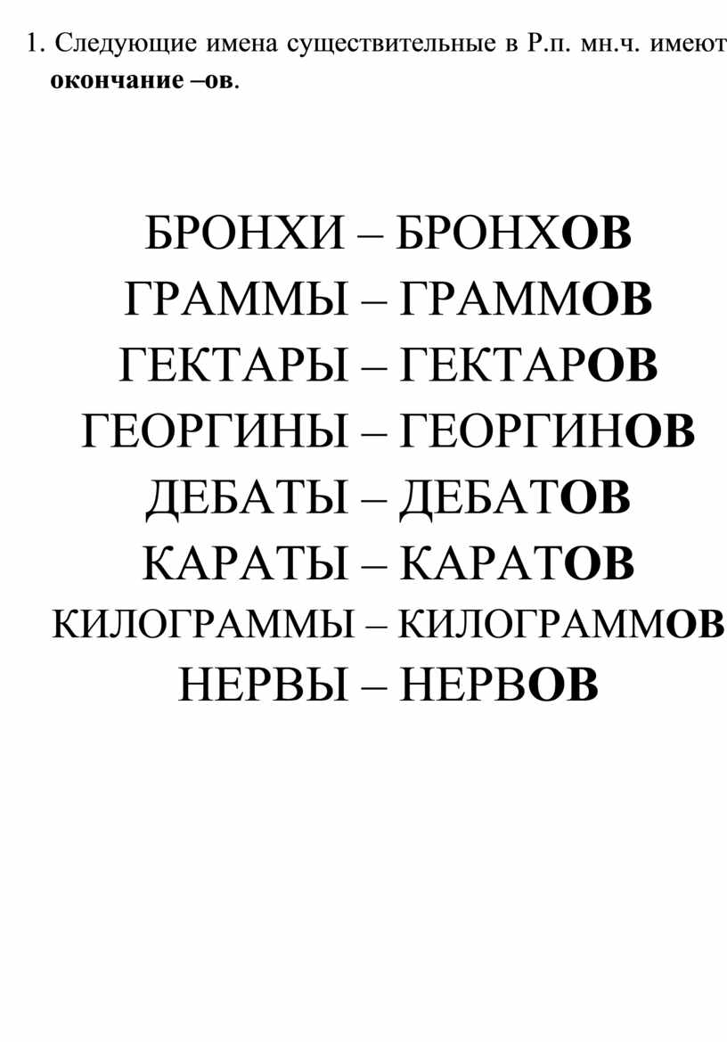 10. Следующие имена существительные в Р.п. мн.ч. имеют окончание –ов.