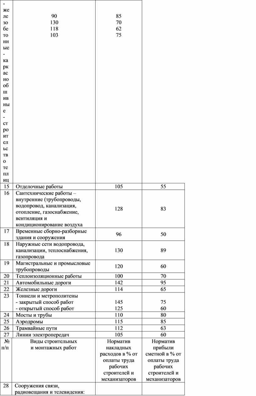 Нормативы накладных расходов и прибыли сметной