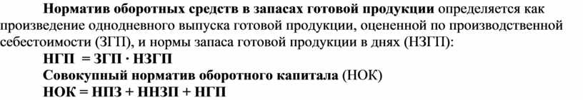 Совокупный норматив оборотного капитала (НОК)