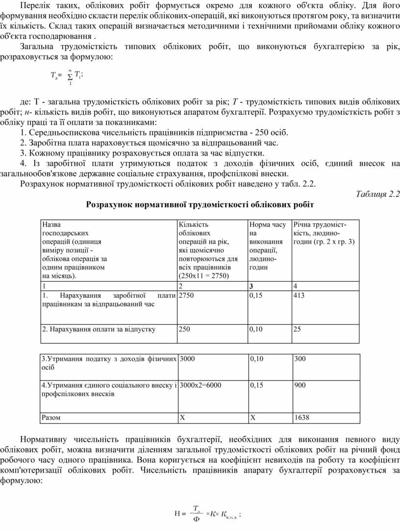 Розрахунок нормативної трудомісткості облікових робіт наведено у табл. 2.2.