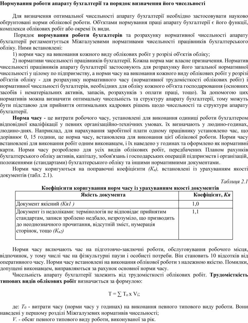 де: Т0 - витрати часу (норми часу у годинах) на виконання певного типового виду роботи. Вони наведені у першому розділі Міжгалузевих нормативів чисельності;