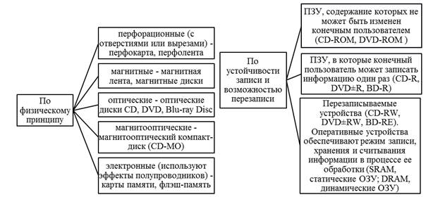 Существует несколько классификаций носителей информации, различающихся по основанию: