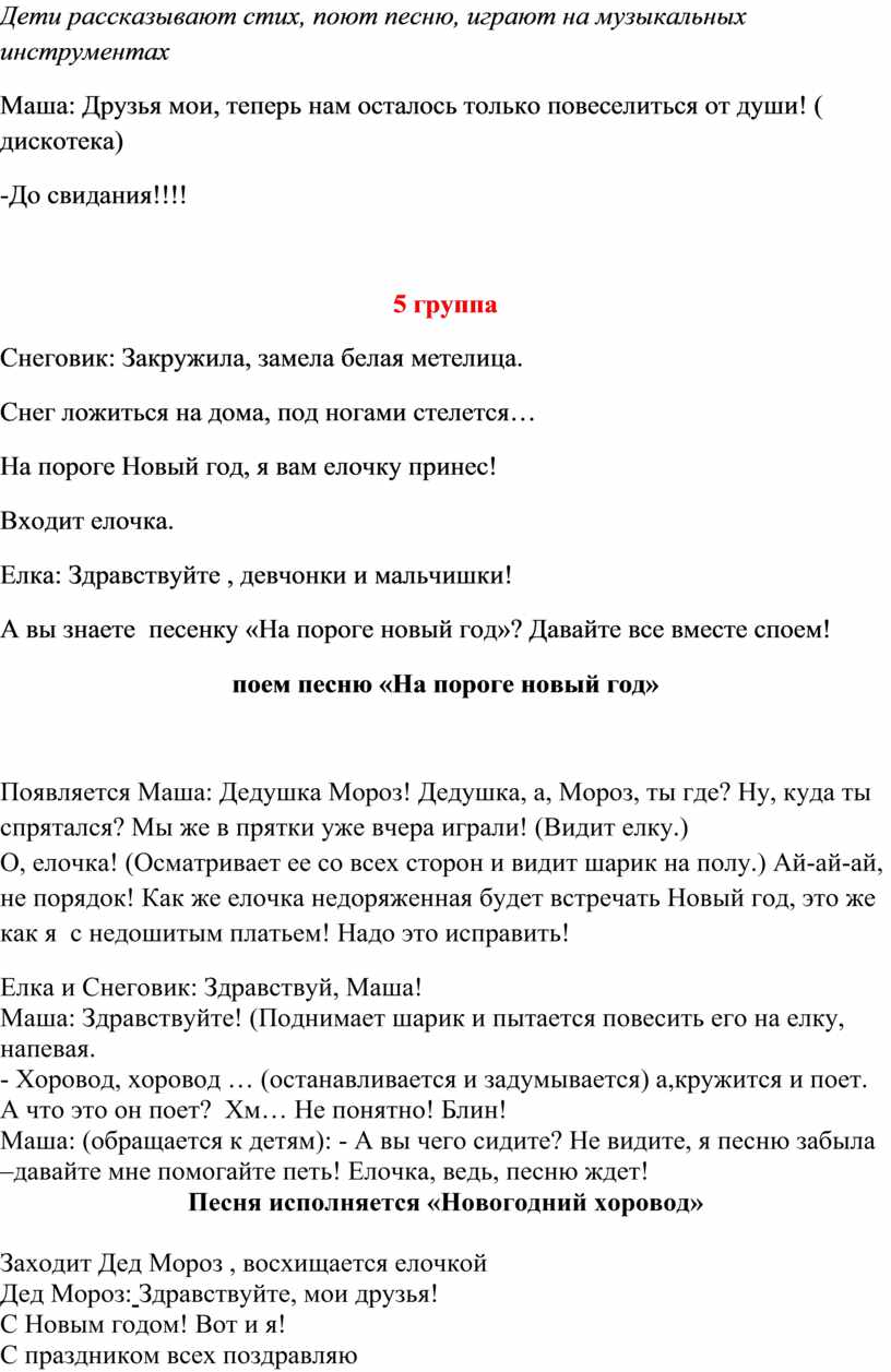 Маша: Здравствуй, Дедушка Мороз! У тебя ,Дед мороз, вот какая борода! Ребята, давайте песню споем дедушке