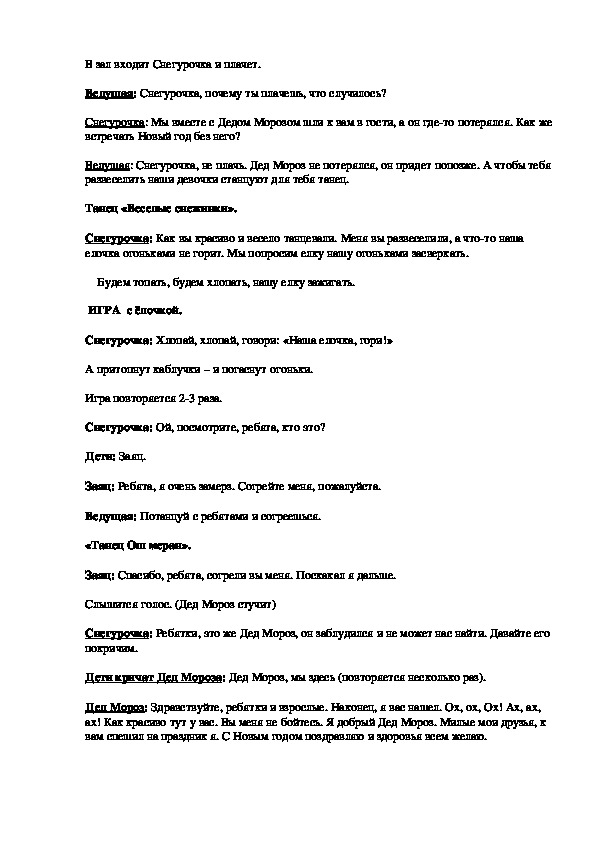 Снегурочка: Мы вместе с Дедом Морозом шли к вам в гости, а он гдето потерялся. Как же
