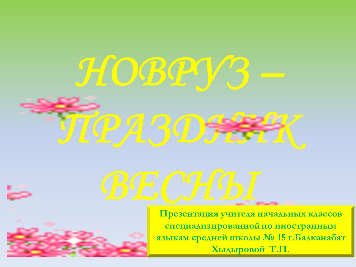 Презентация учителя начальных классов специализированной по иностранным языкам средней школы № 15 г.Балканабат Хыдыровой Т.П.