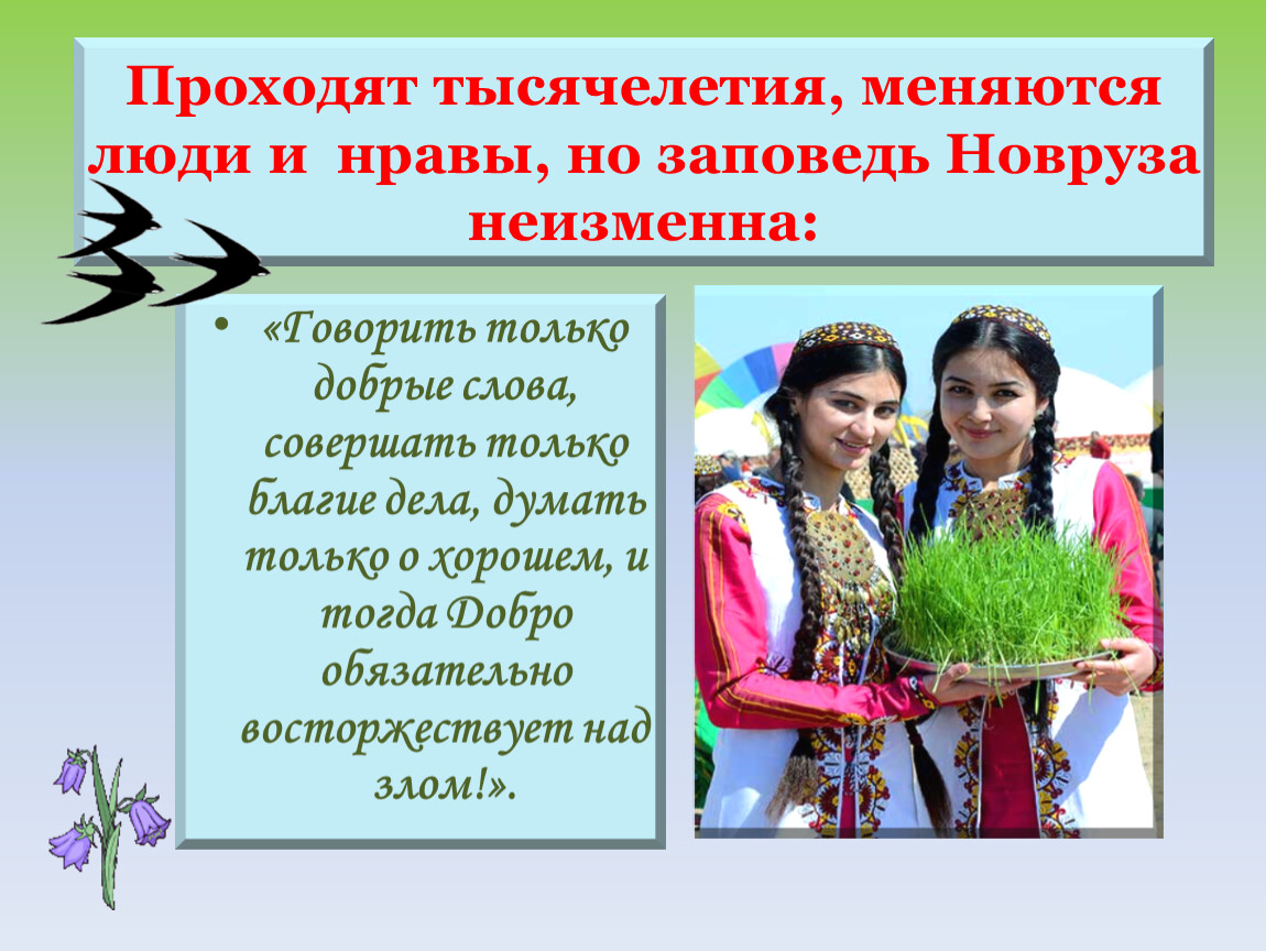 Проходят тысячелетия, меняются люди и нравы, но заповедь Новруза неизменна: