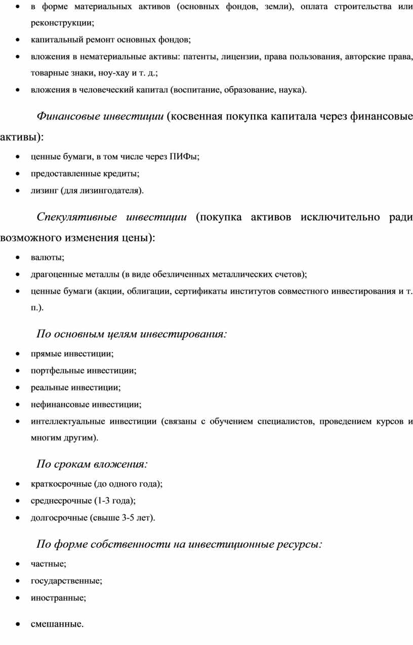 · интеллектуальные инвестиции (связаны с обучением специалистов, проведением курсов и многим другим).