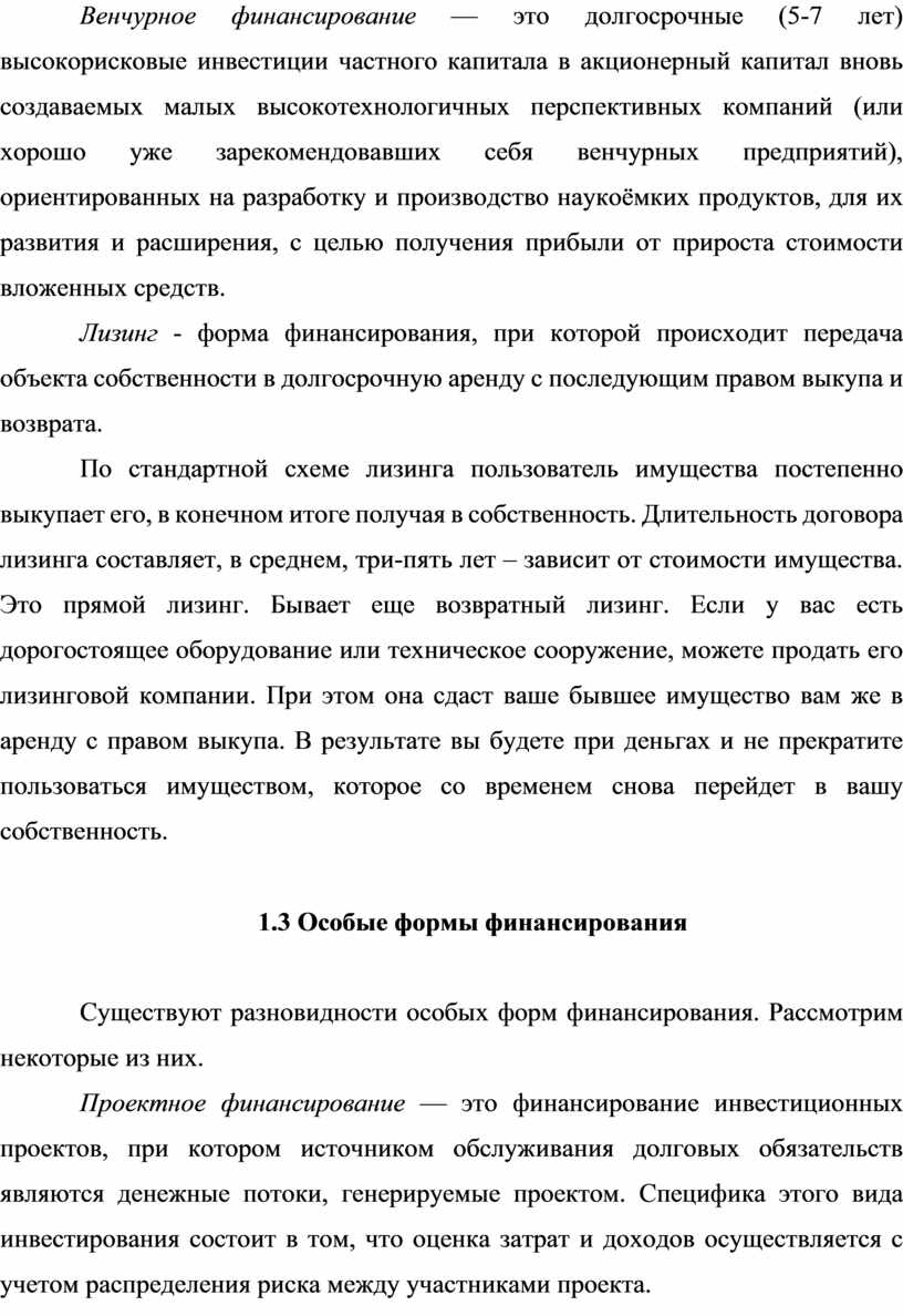 Существуют разновидности особых форм финансирования. Рассмотрим некоторые из них.