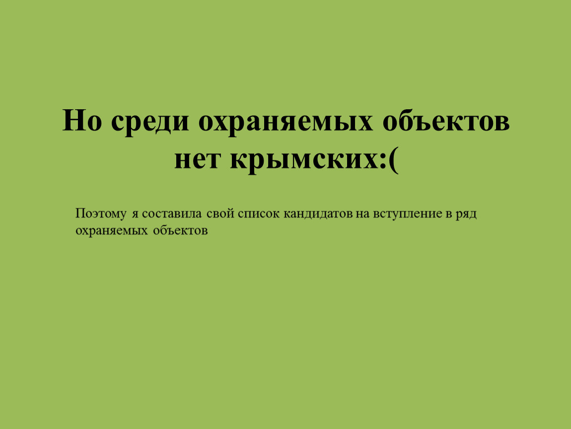 Поэтому я составила свой список кандидатов на вступление в ряд охраняемых объектов