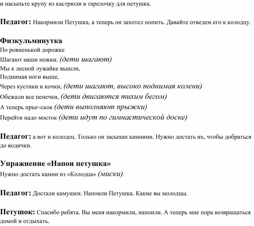 Петушка, а теперь он захотел попить. Давайте отведем его к колодцу.