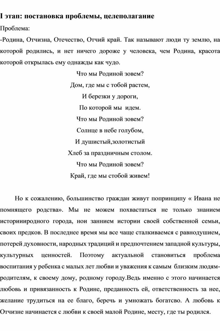 I этап: постановка проблемы, целеполагание