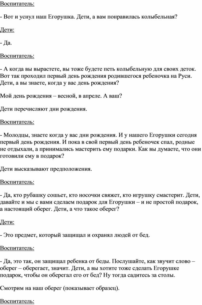 Воспитатель: - Верно. А кто из вас знает, помнит какие либо приметы, поговорки связанные с этими языческими символами.