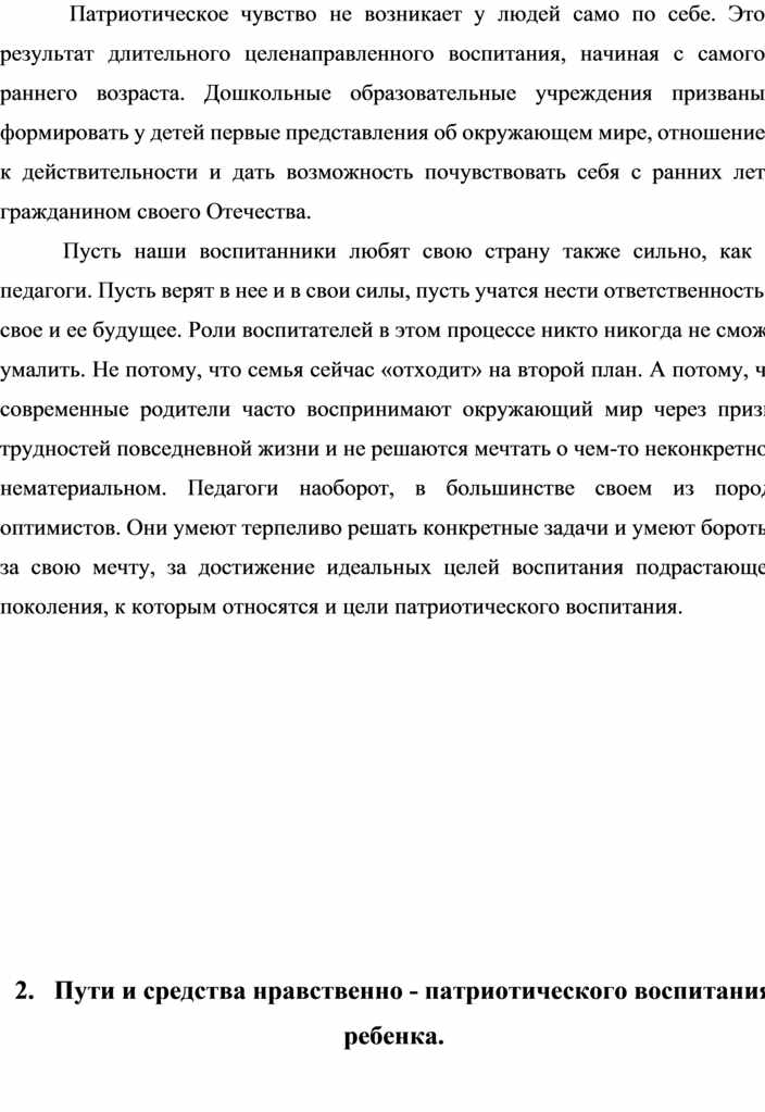 2. Пути и средства нравственно - патриотического воспитания ребенка.