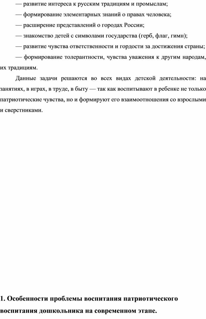 1. Особенности проблемы воспитания патриотического воспитания дошкольника на современном этапе.