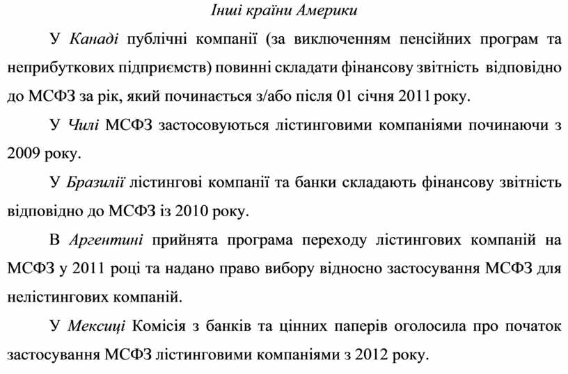 У Мексиці Комісія з банків та цінних паперів оголосила про початок застосування МСФЗ лістинговими компаніями з 2012 року.