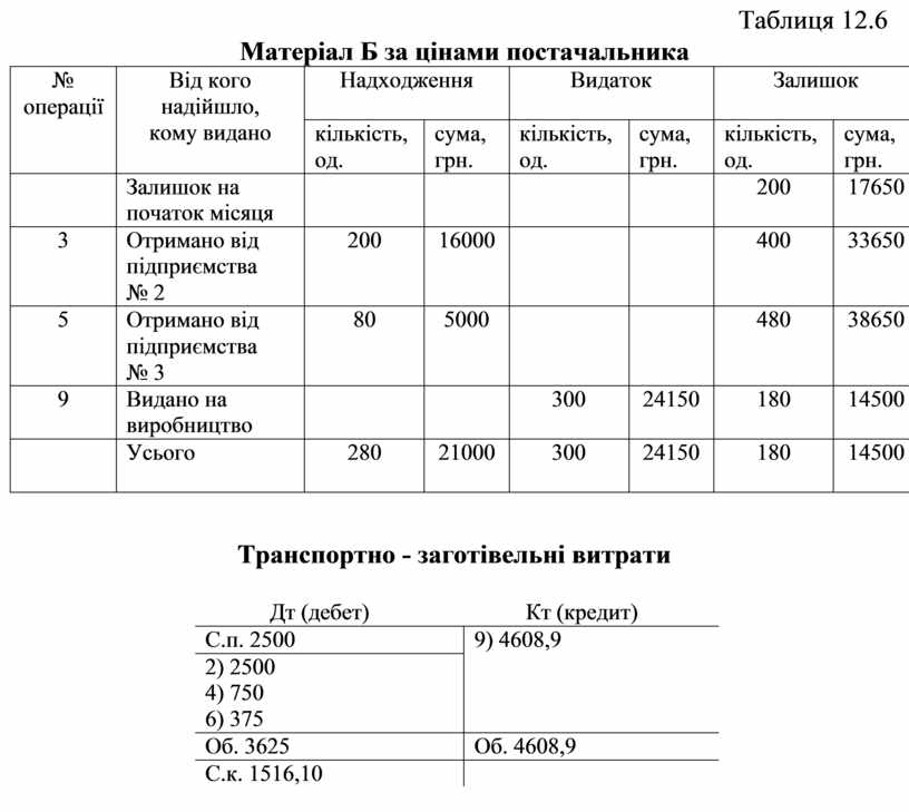 -Матеріал Б – 480 одиниць покупною вартістю 38650 грн.