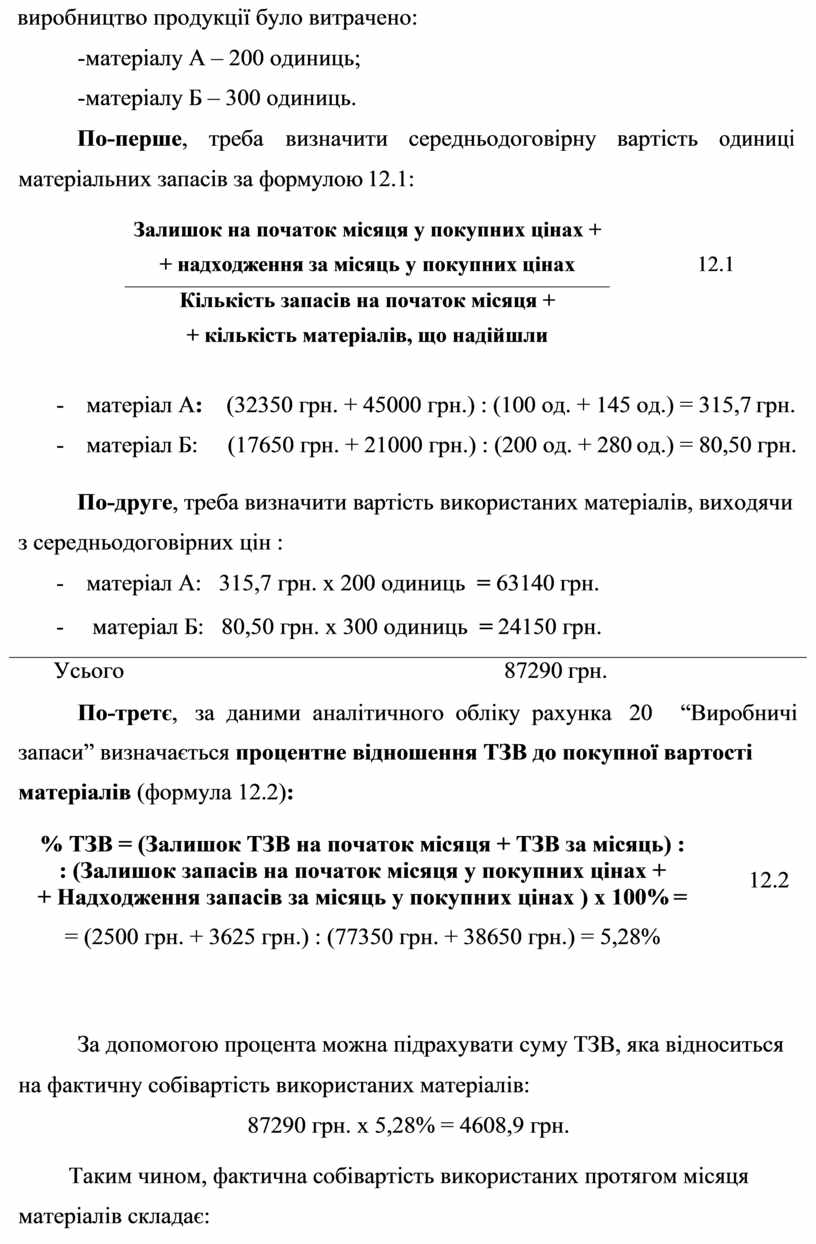 запаси” визначається процентне відношення ТЗВ до покупної вартості матеріалів (формула 12.2):